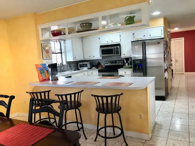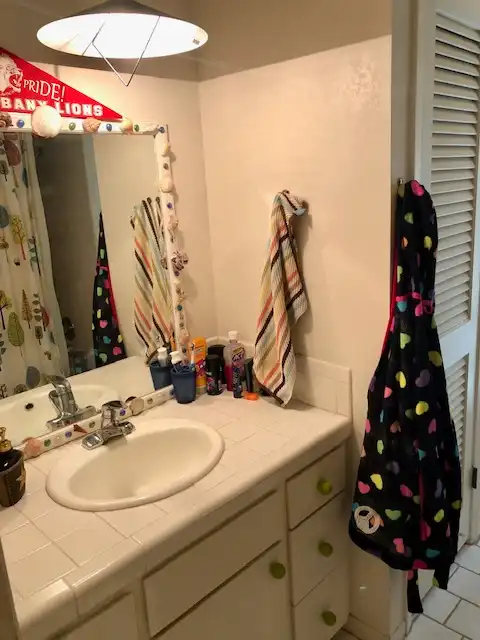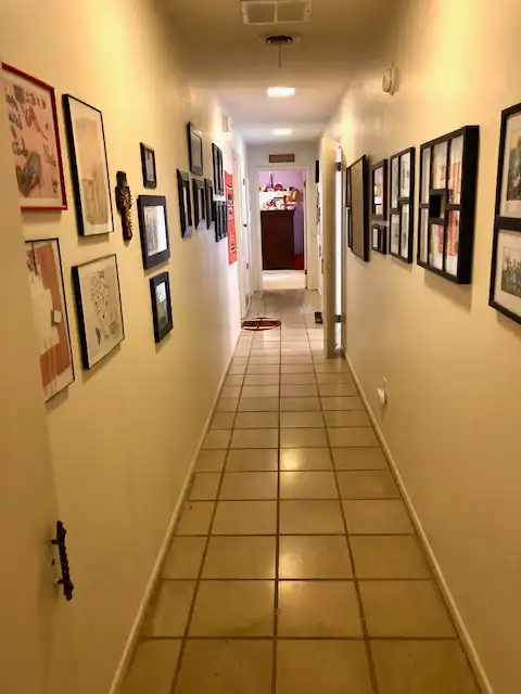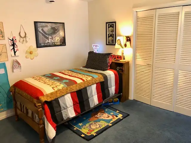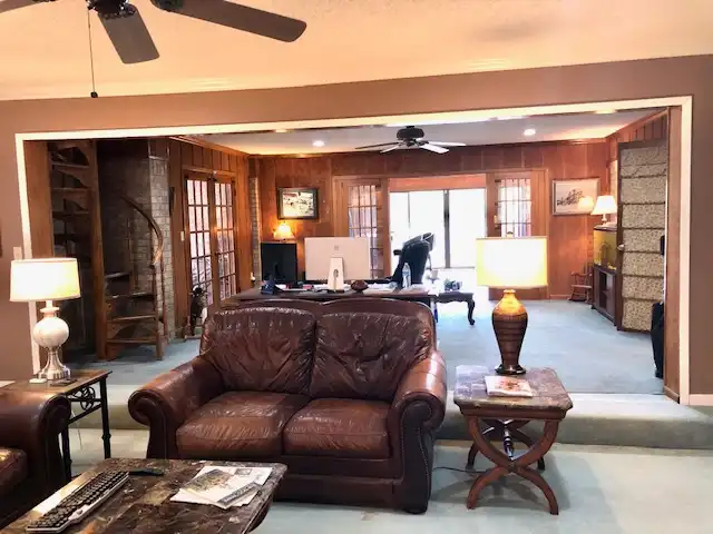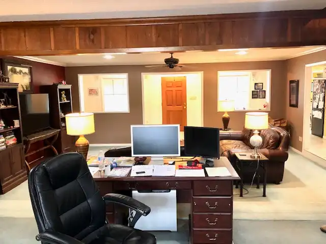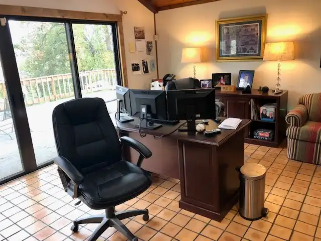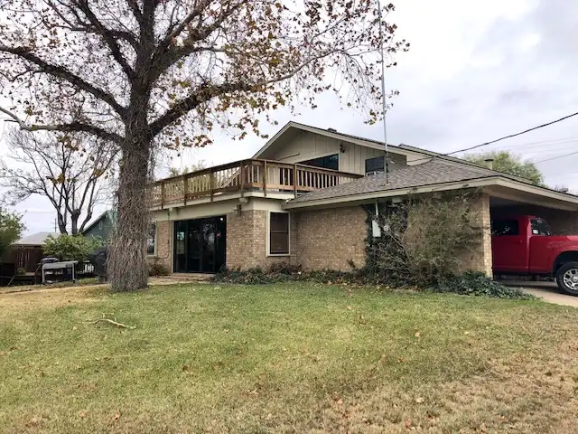 Three bedrooms and two bath downstairs and an office, bedroom and bath upstairs with a large upper deck that overlooks the back yard.