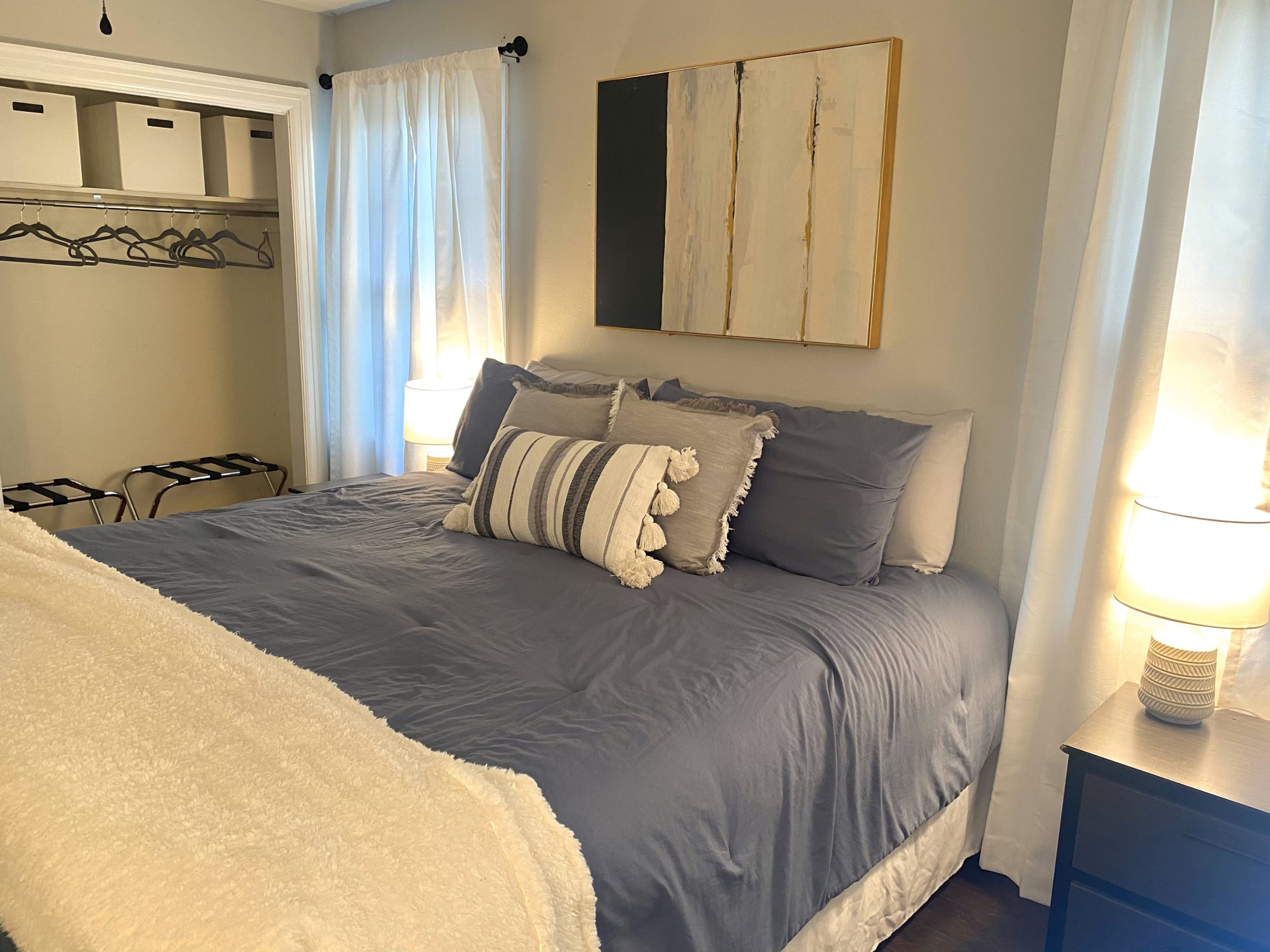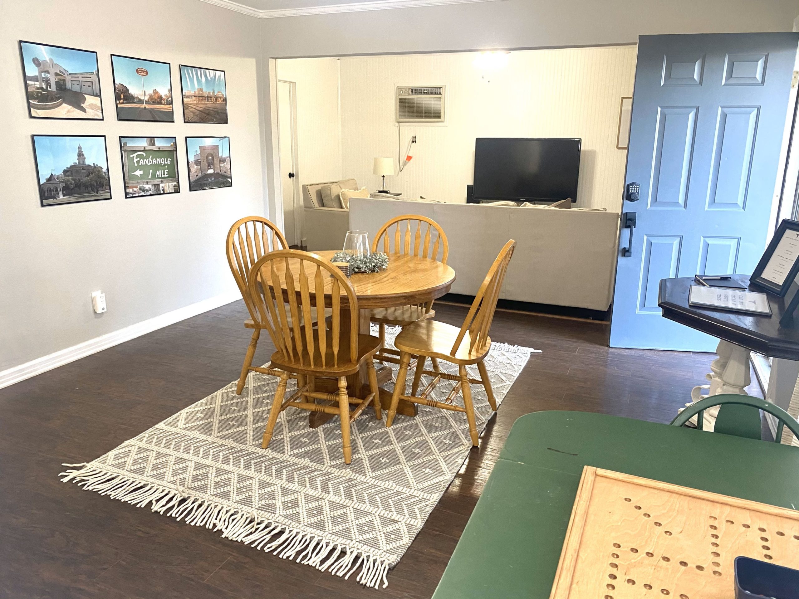 This charming home is set up for and active on Air BNB as a destination stay for Albany, Texas. Two bedroom, one bath and ready for immediate move in or continuation for vacation rentals. Fully furnished and furnishings can be purchased for an additional $7,500.00. Super clean, central air, double pane windows, carport in front with storage sheds and additional parking in back.