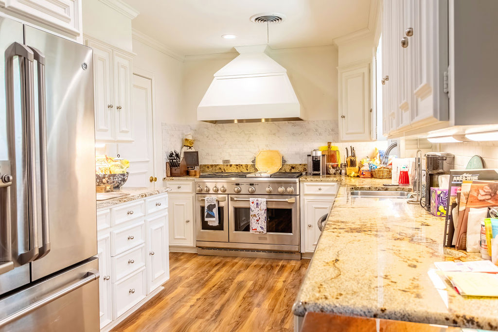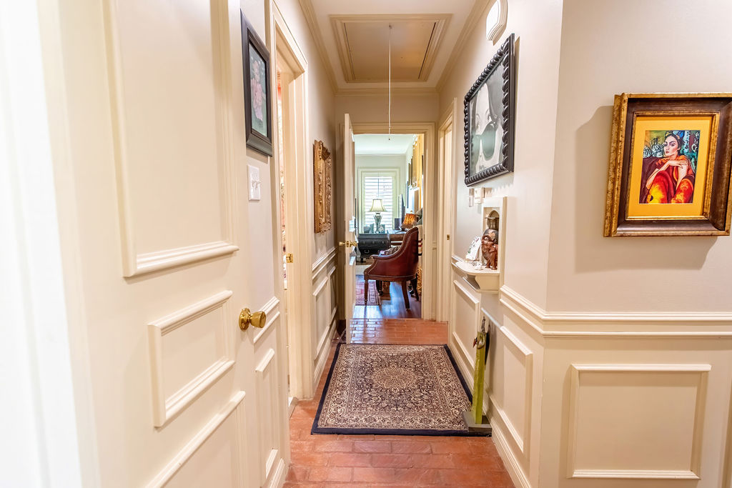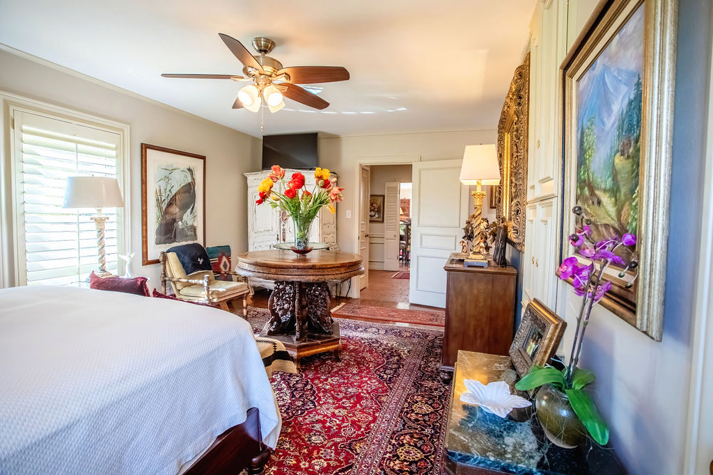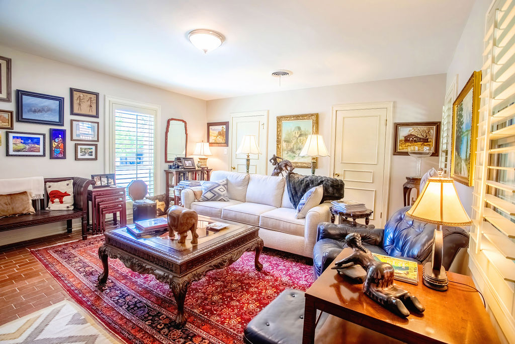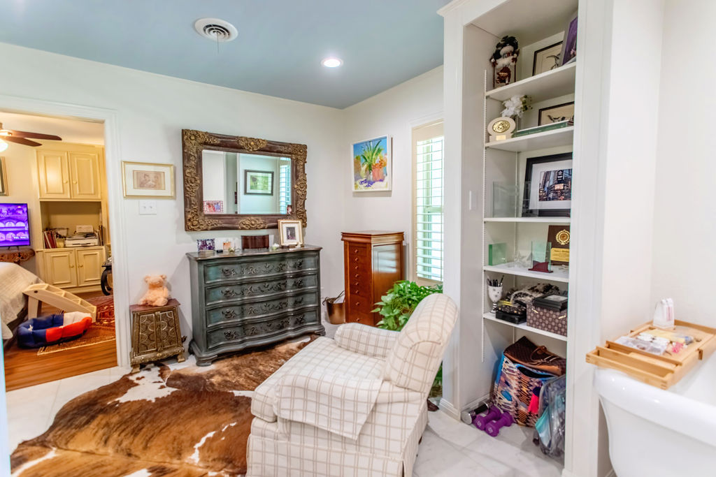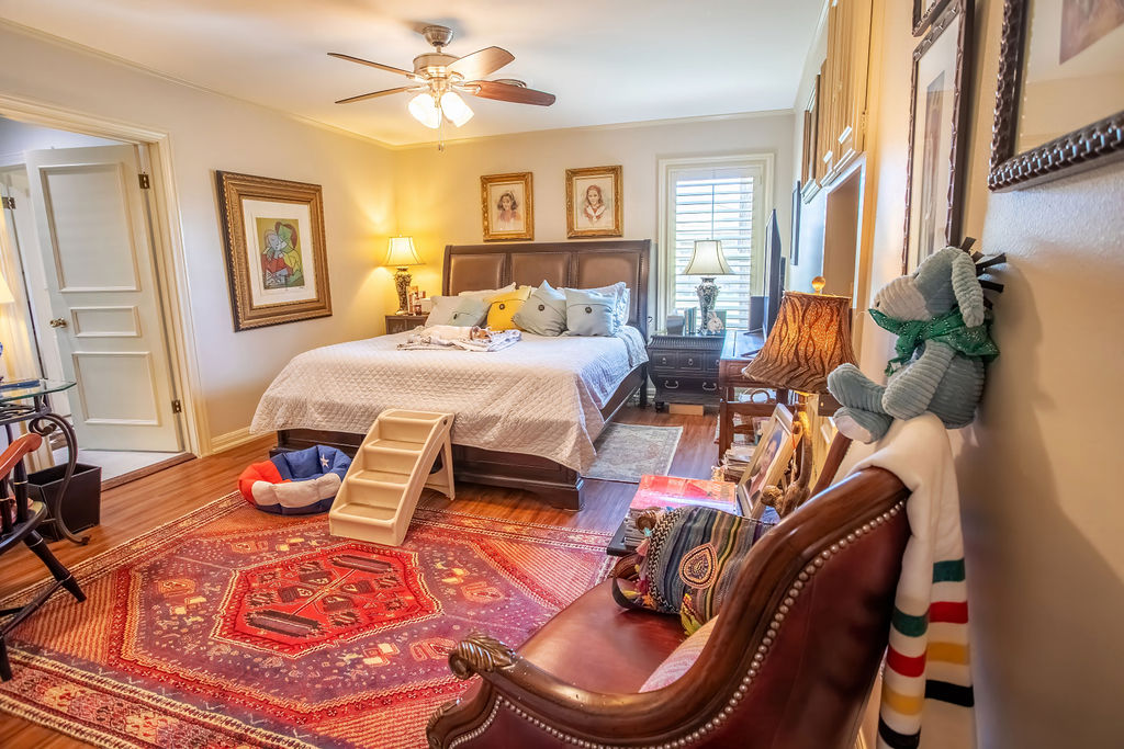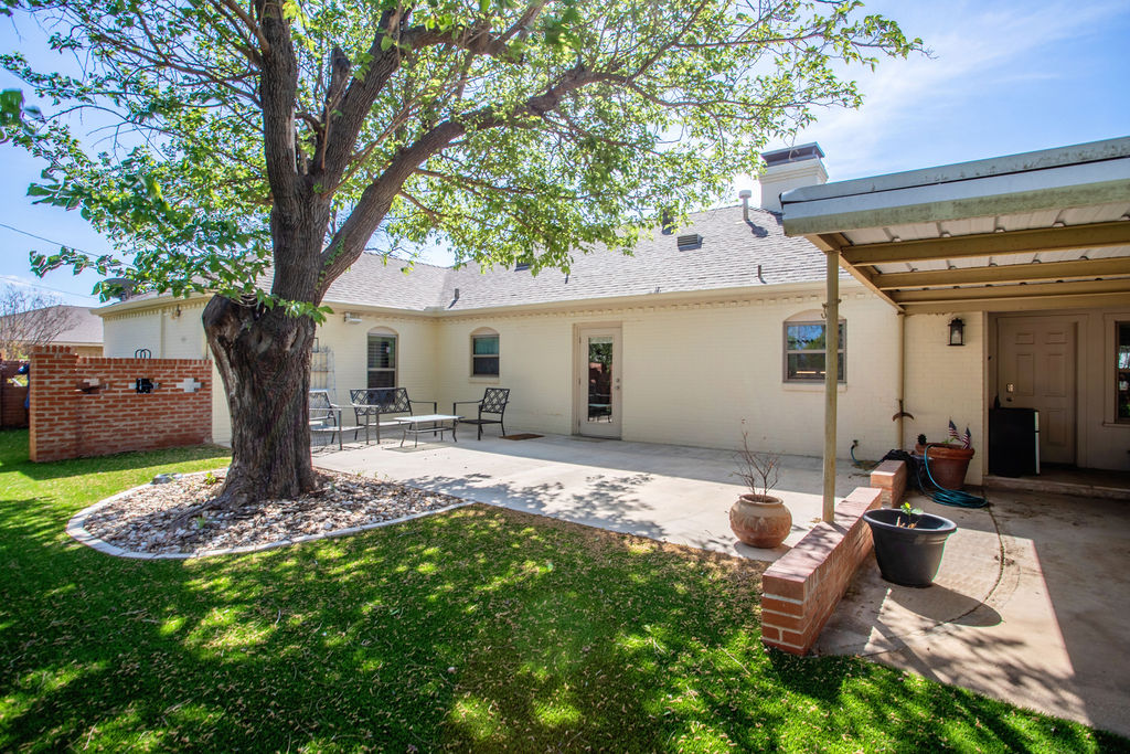 Beautiful and well-constructed home in a desirable neighborhood in Albany, TX. This residence features 2 to 3 spacious bedrooms, 3½ bathrooms, a fireplace, and a kitchen equipped with high-end appliances. It seamlessly blends original charm—such as brick flooring, wide crown molding, and classic paint hues—with contemporary updates, including a modernized kitchen and new windows throughout. The master suite includes a large En-suite bathroom, offering a level of space rarely seen. Ample closet and storage options are available throughout the home. The backyard is perfect for hosting family and friends, featuring easy-to-maintain artificial turf with tree-shaded and covered patio areas for entertaining. A spacious 552 sq ft. finished out metal storage building equipped with built-in cabinetry and two mini-split air conditioning units, which provide a flexible space, suitable for an office, music room, craft room, or additional guest quarters.